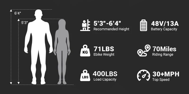 Recommended Rider Heights 5'3" to 6'4"